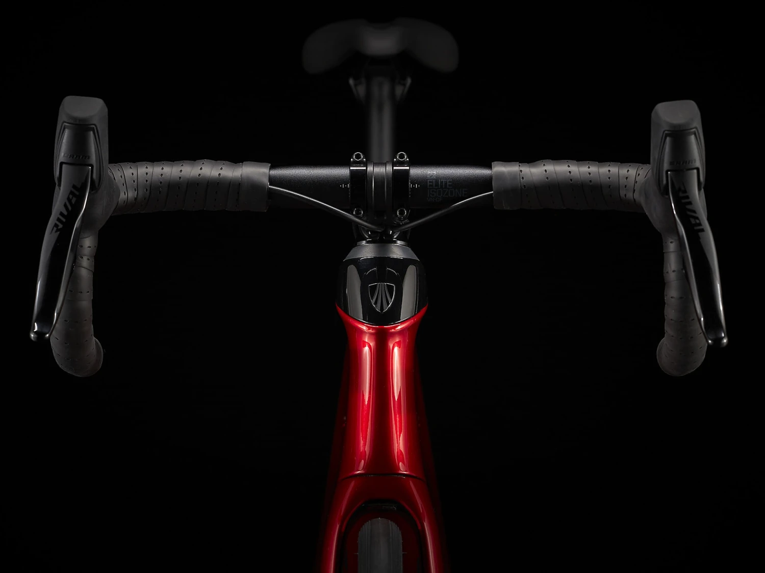 Handvat:Â Bontrager Elite IsoZone VR-SF, aluminium, 31,8 mm, interne Di2-kabelgeleiding, 75 mm bereik, 128 mm val, 40 cm breedte (52)