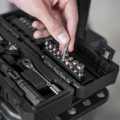 Hoogwaardige momentsleutel met bijzonder fijn instelbaar koppelbereik van 4 – 20 Nm en schakelbare ratelkop met directe montage voor 1/4″ zeskantbits. Mini-ratel met precisie-duimhendel voor het omschakelen van de looprichting en duimwiel voor snel schroeven en maximale controle, zelfs in de krapste ruimtes. Inclusief magnetische bithouder voor uitgebreide hefboom, vingertopbithouder voor schroeven in krappe ruimtes en 18 gereedschapsbits met 30 mm lengte voor gemakkelijke toegang tot moeilijk bereikbare schroefkoppen. De kartels op de bits maken het gemakkelijk om ze uit de bithouder te halen en van de momentsleutel en mini-ratel af te halen. Inclusief op maat gemaakte transportbox.